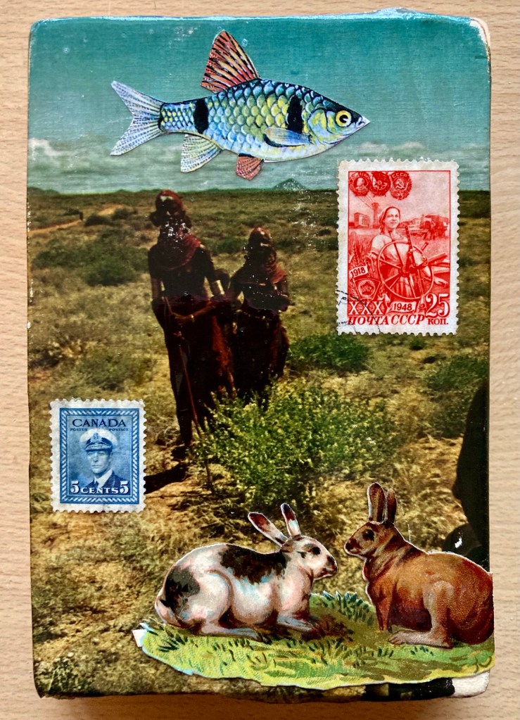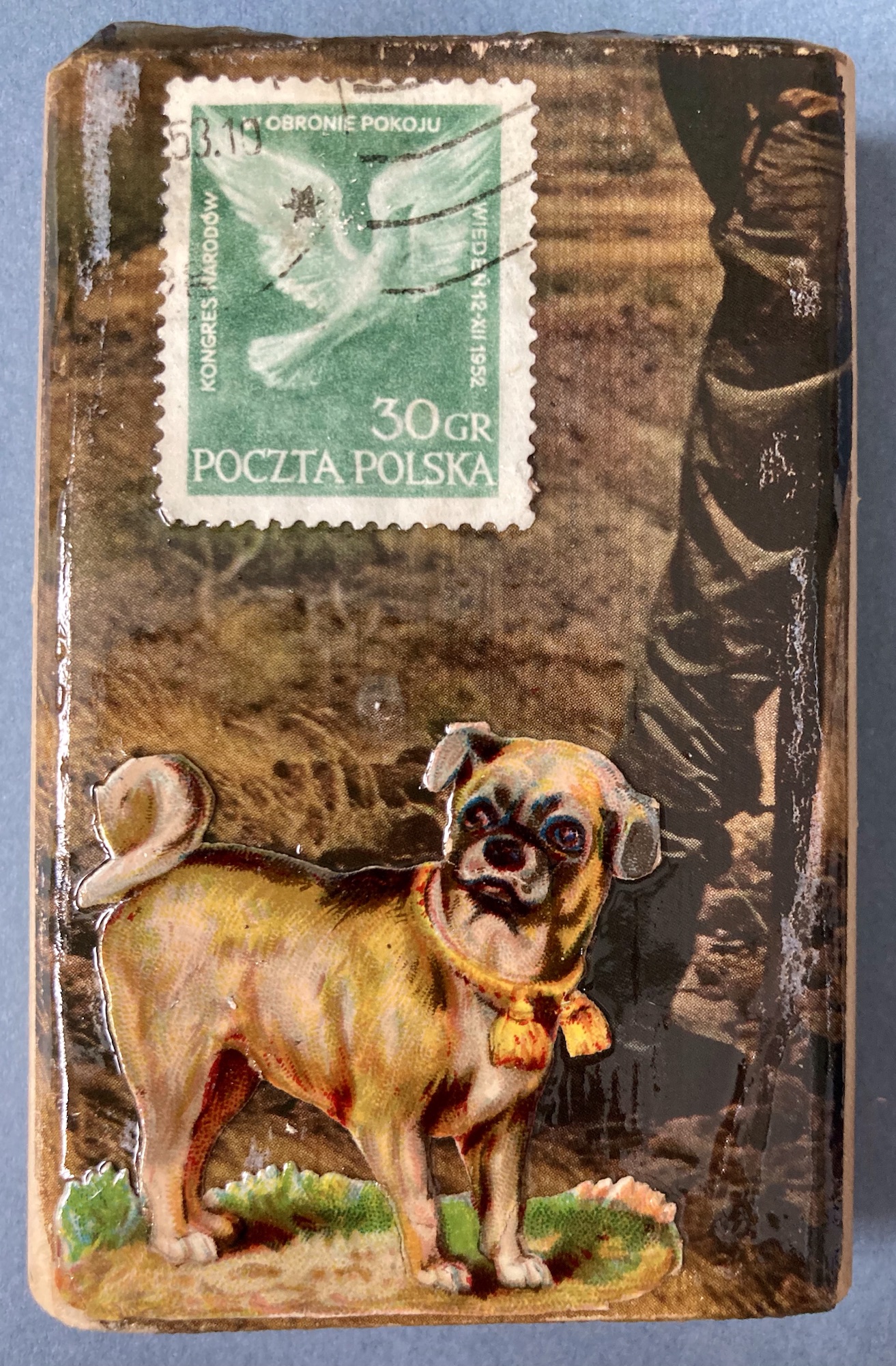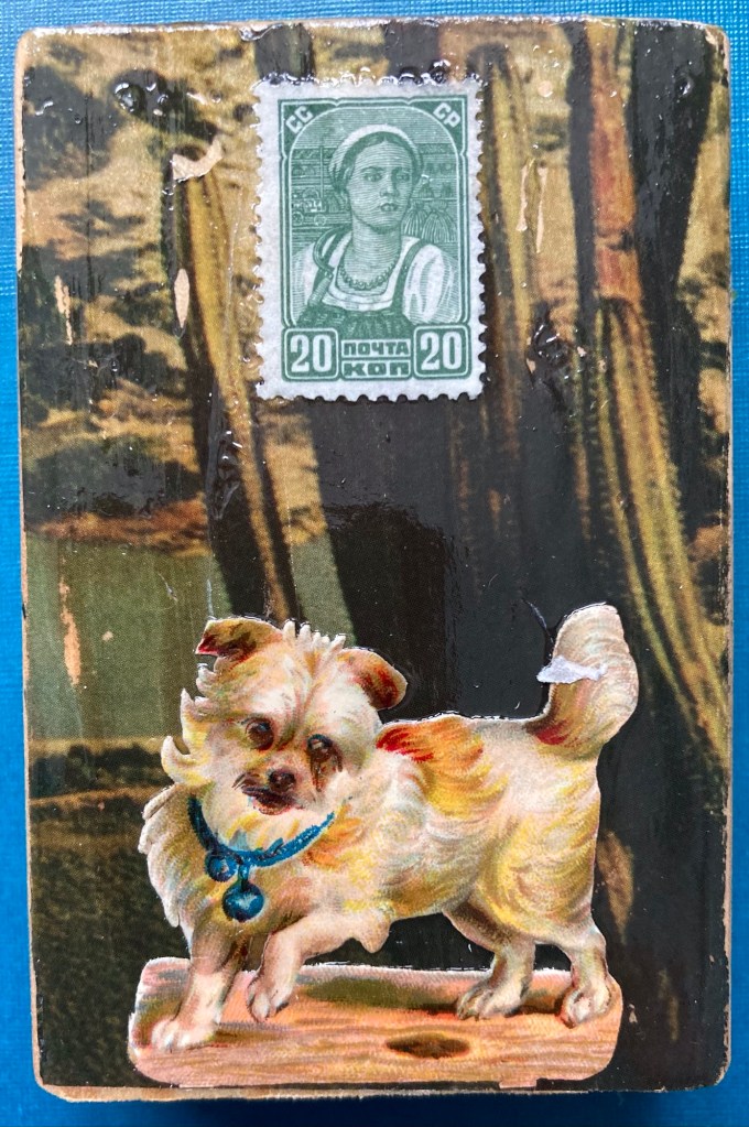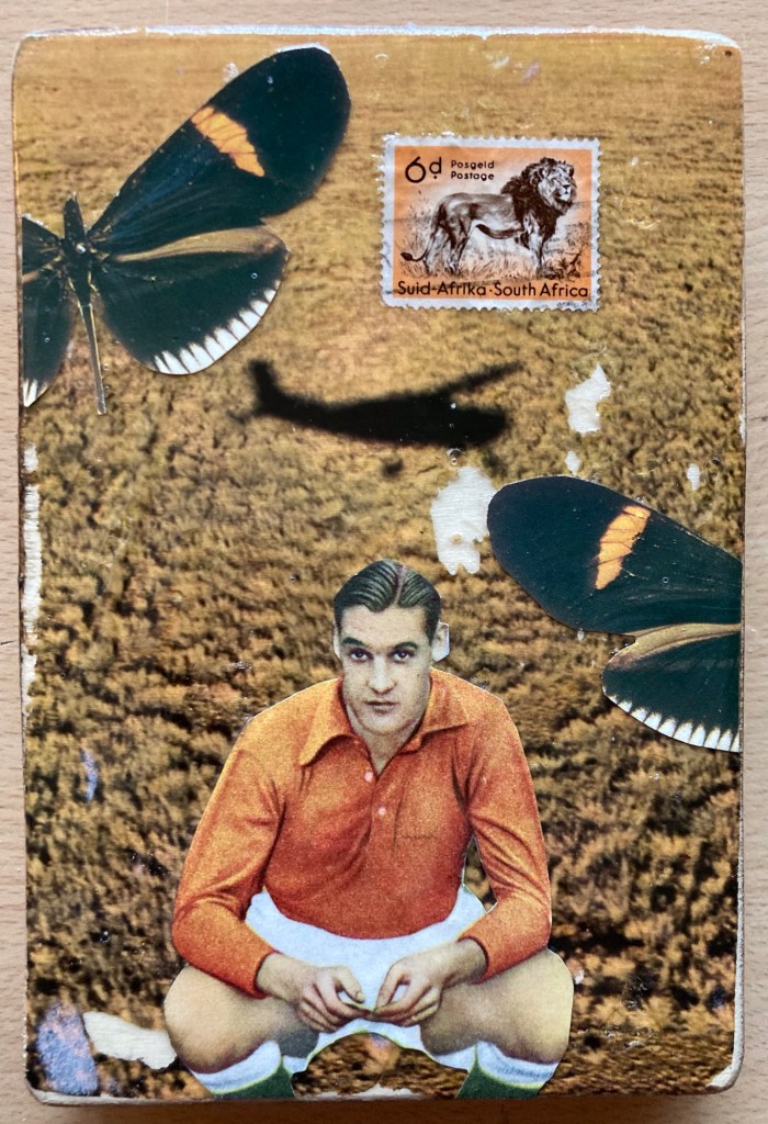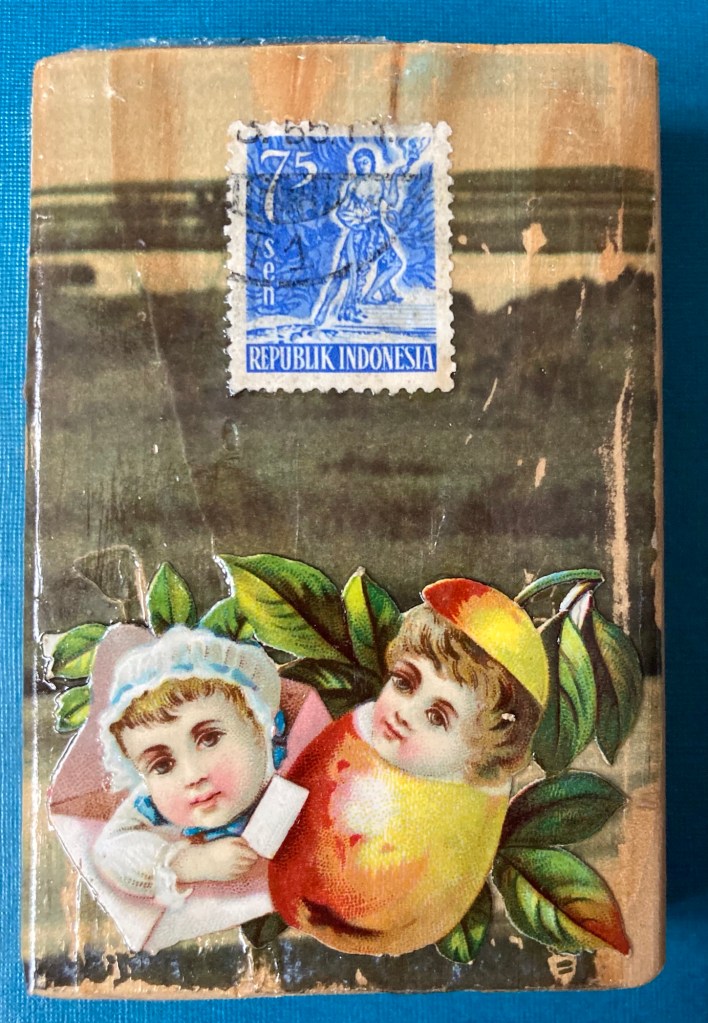 Small (6x9x1,5cm) pigmenttransfers/collages on wood. Especially made for the Kunstroute in September in ARS in Leiden.