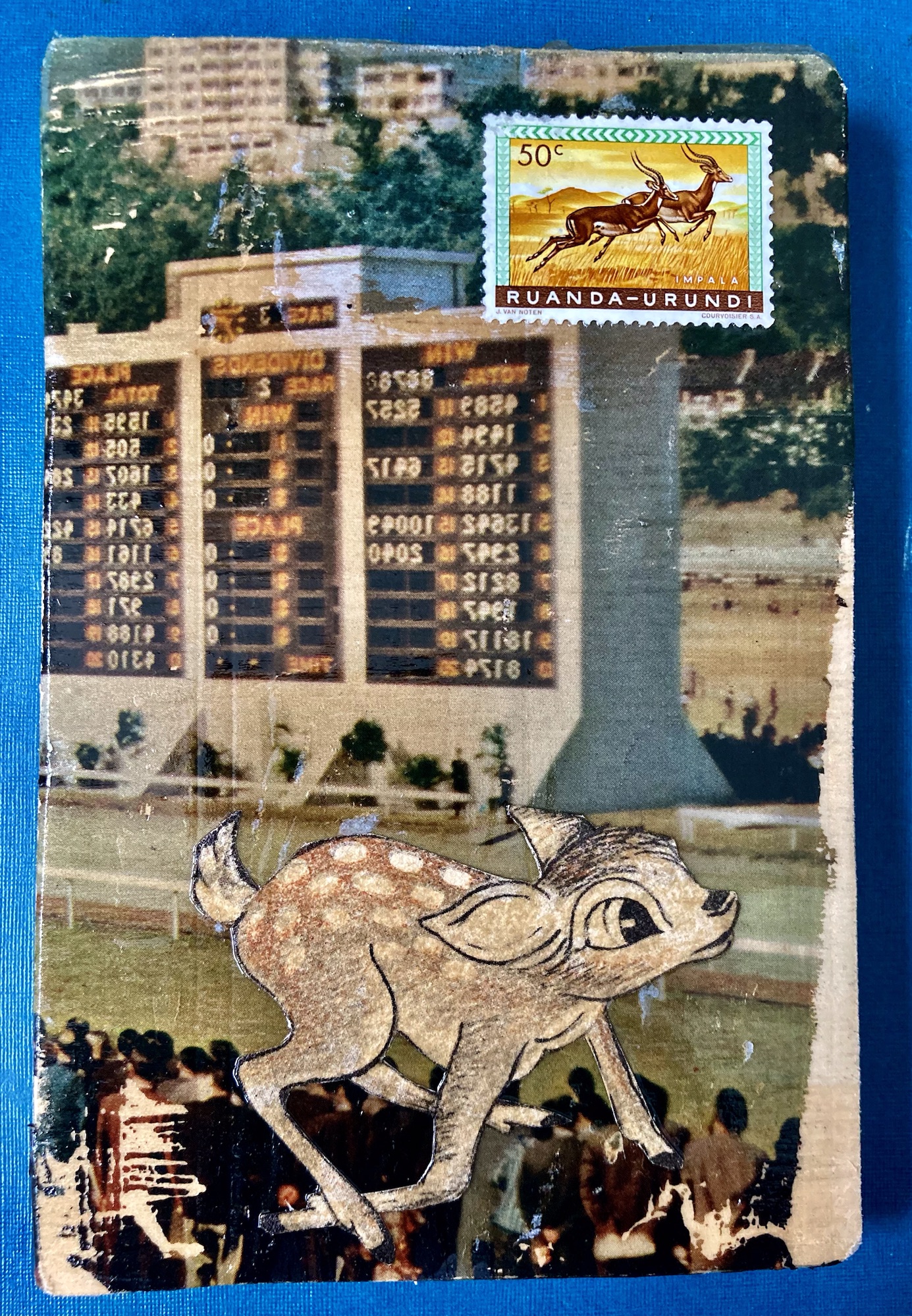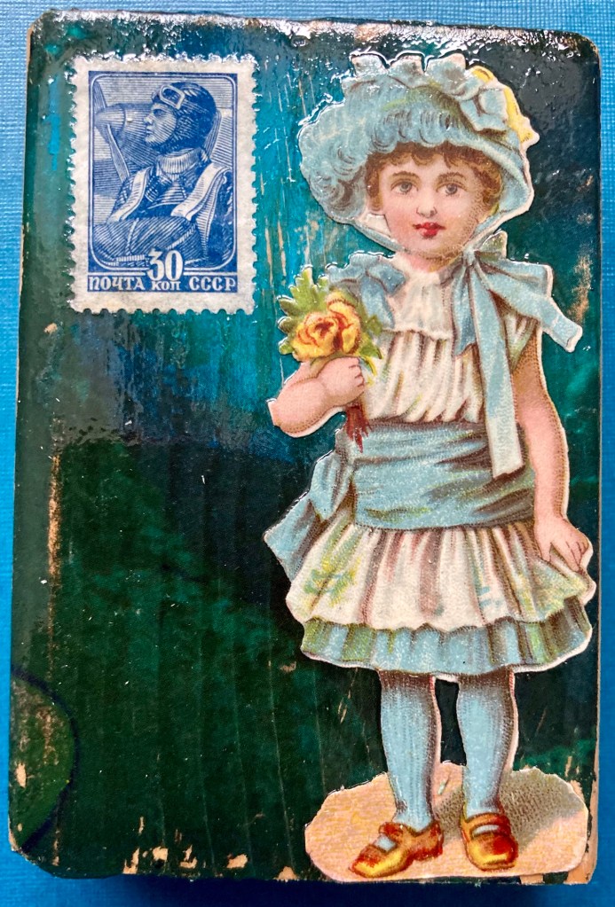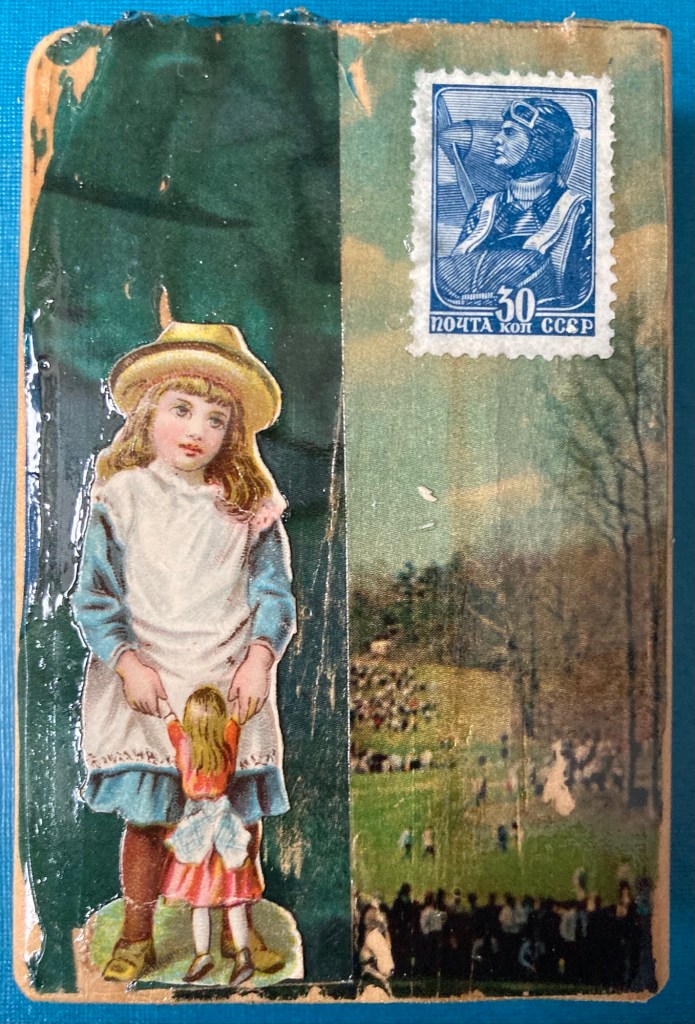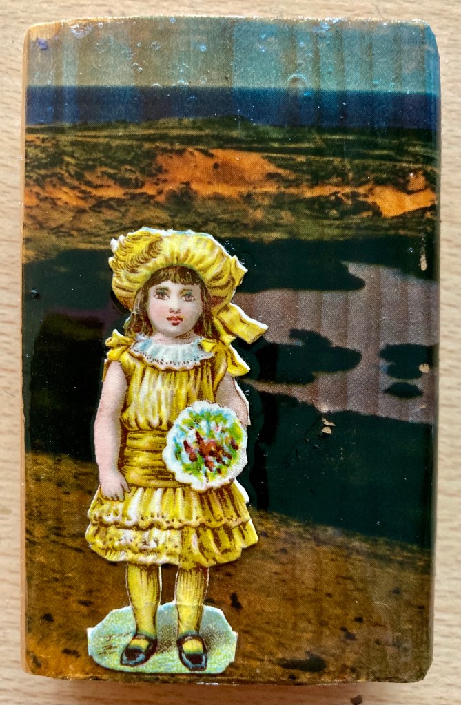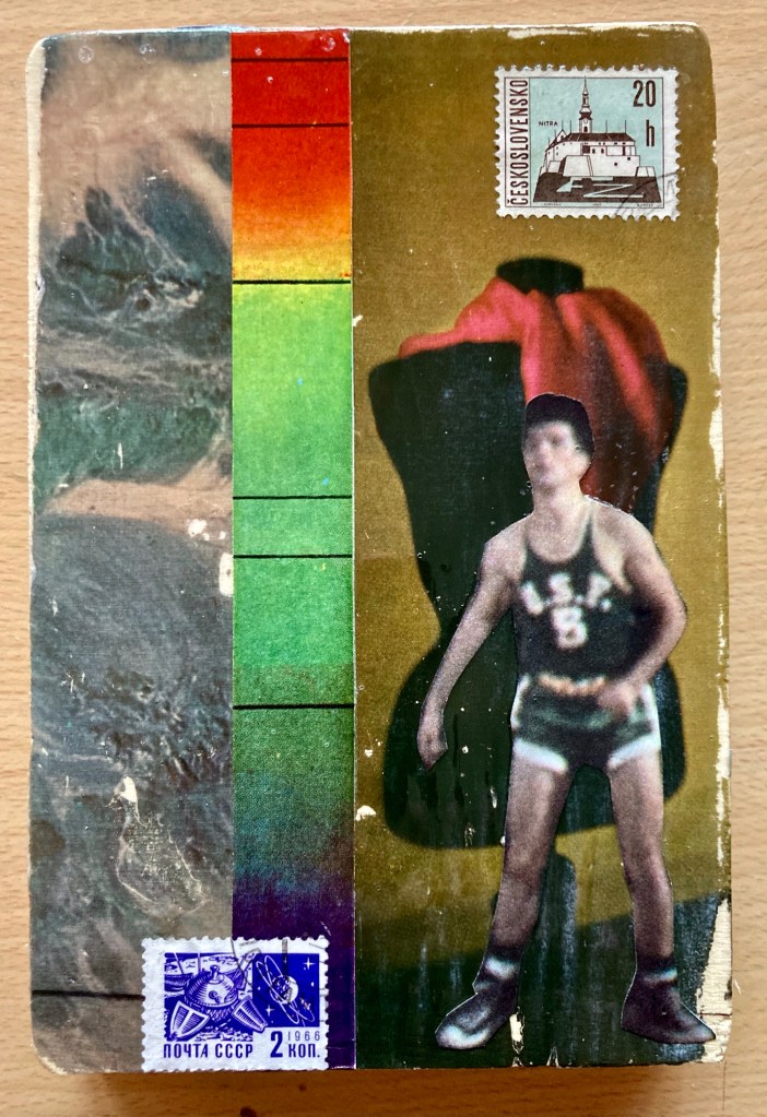 Small (6x9x1,5cm) pigmenttransfers/collages on wood. Especially made for the Kunstroute in September in ARS in Leiden.
