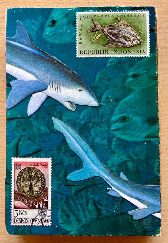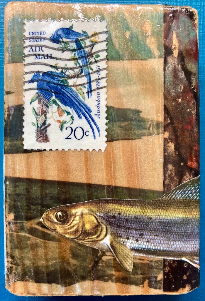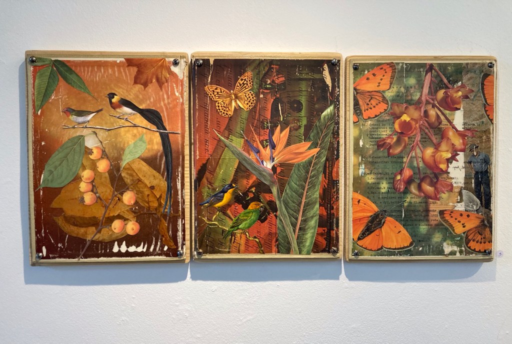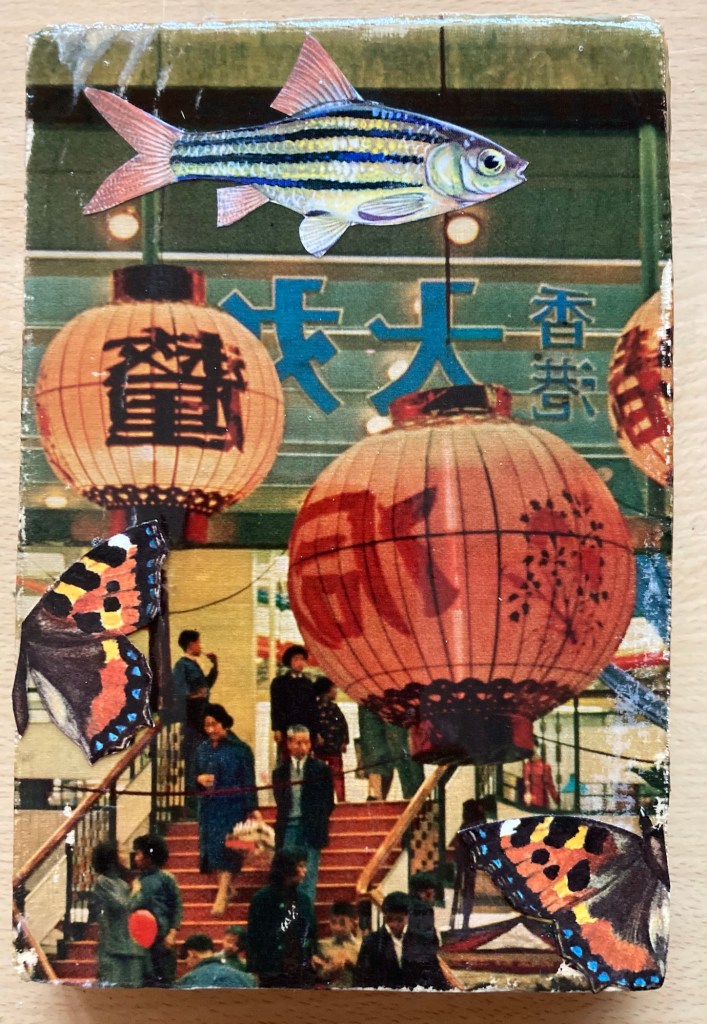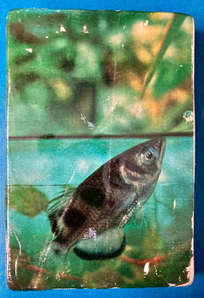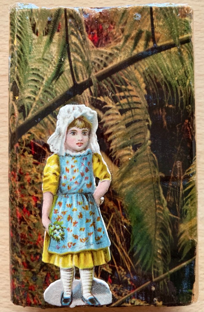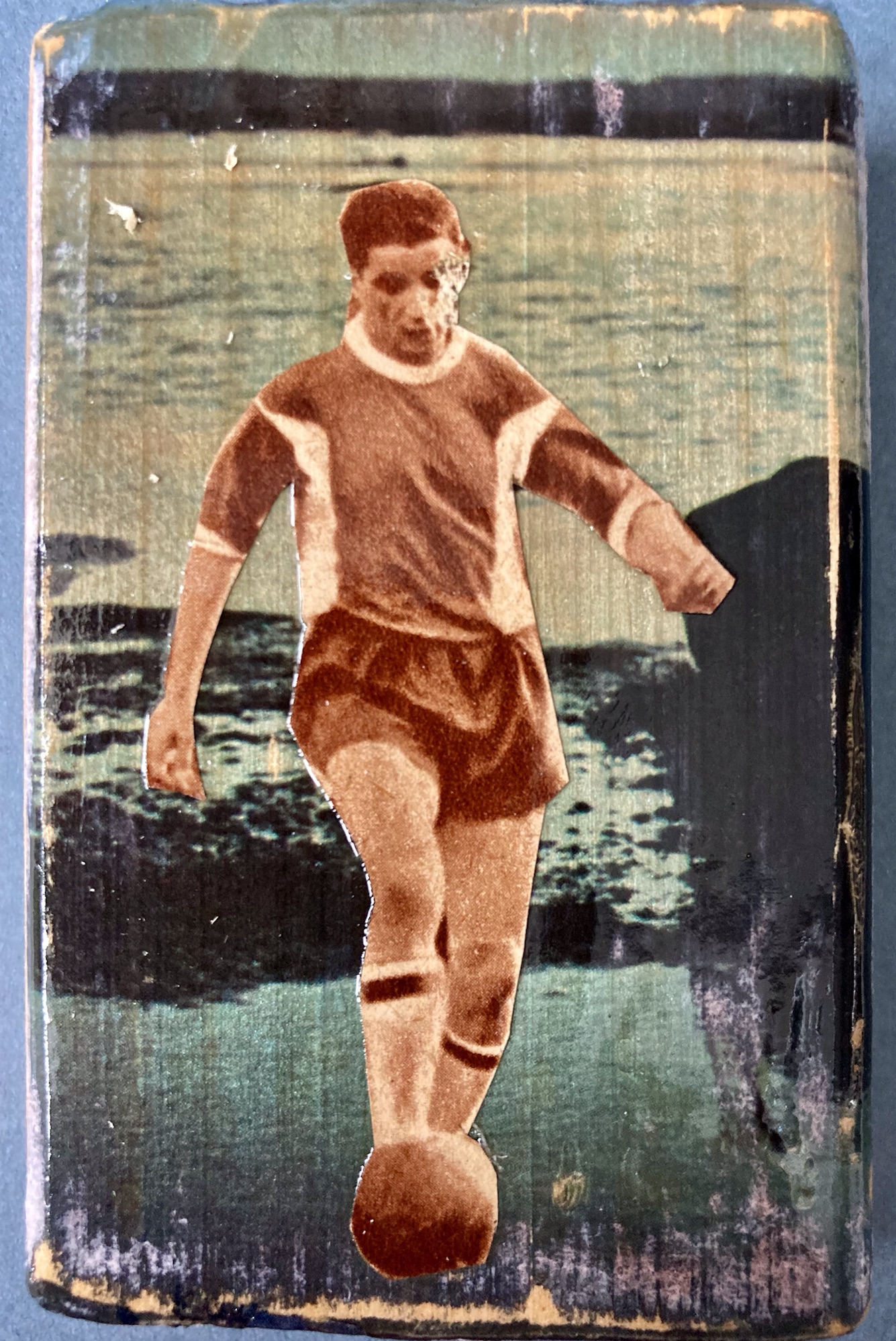 Small (6x9x1,5cm) pigmenttransfers/collages on wood.