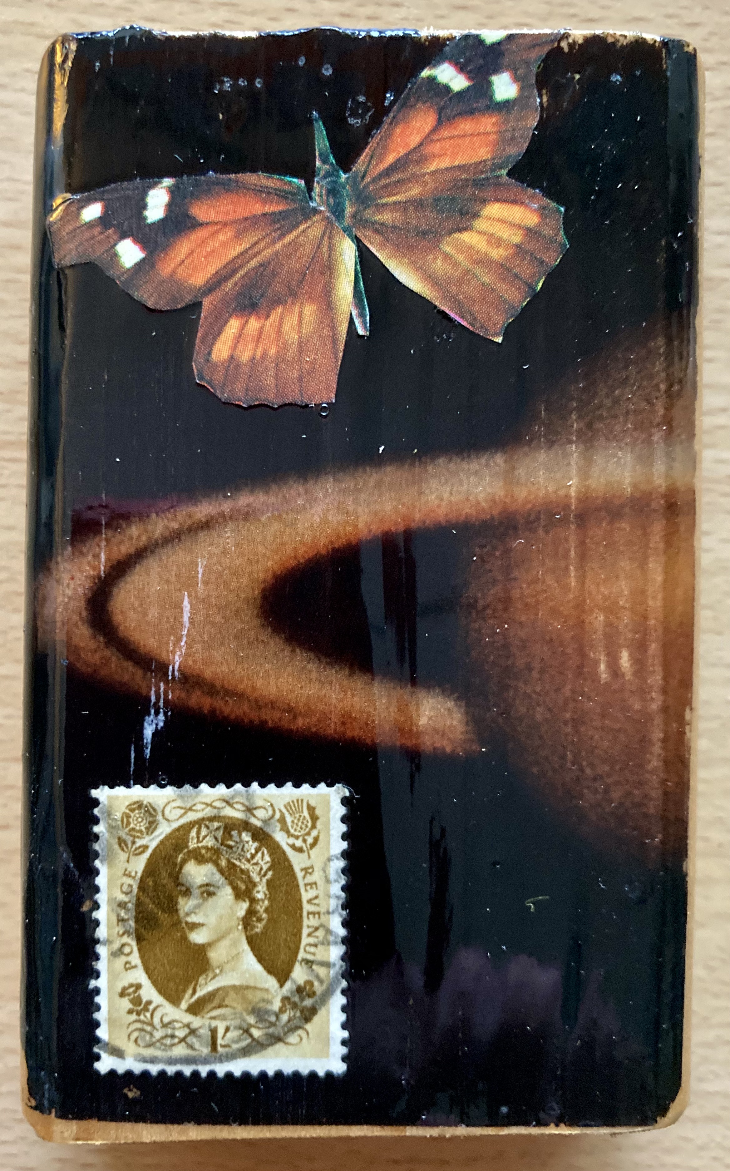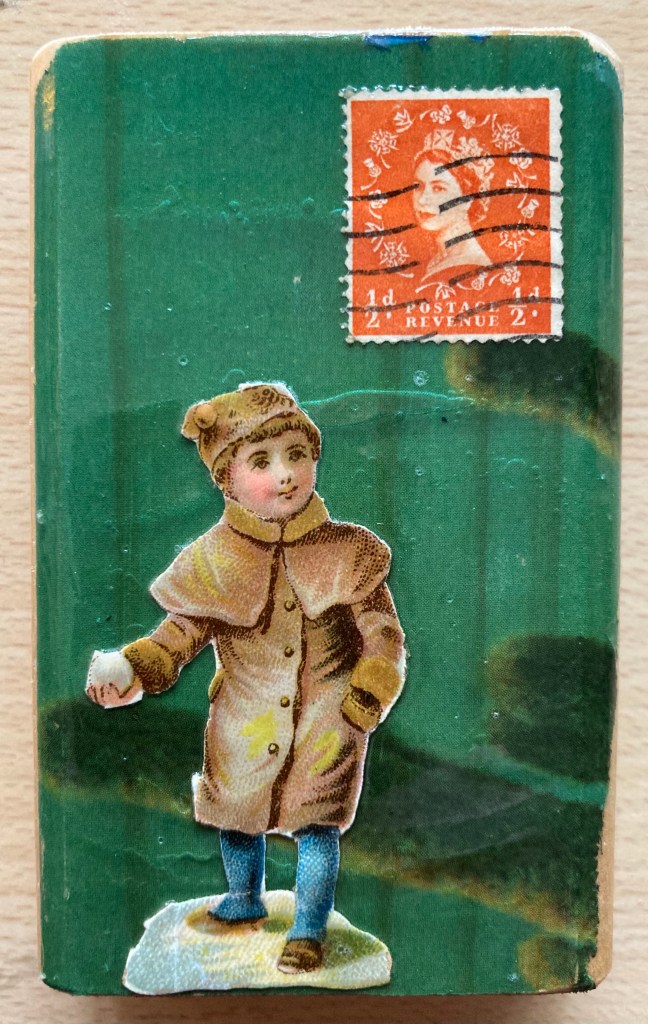 Small work on wood (6x9x1cm) made for the art market in Leiden on May the 5th 2025.