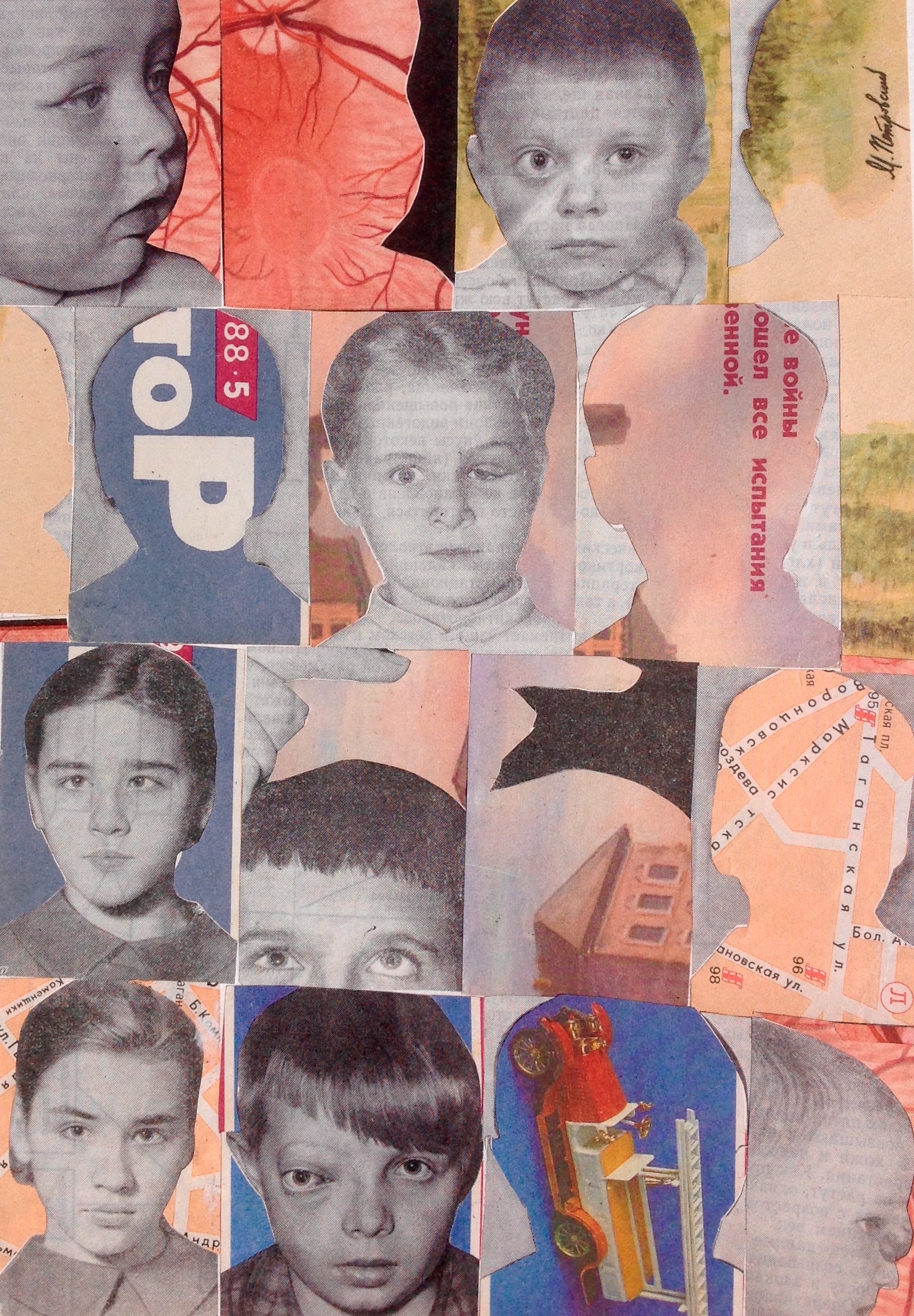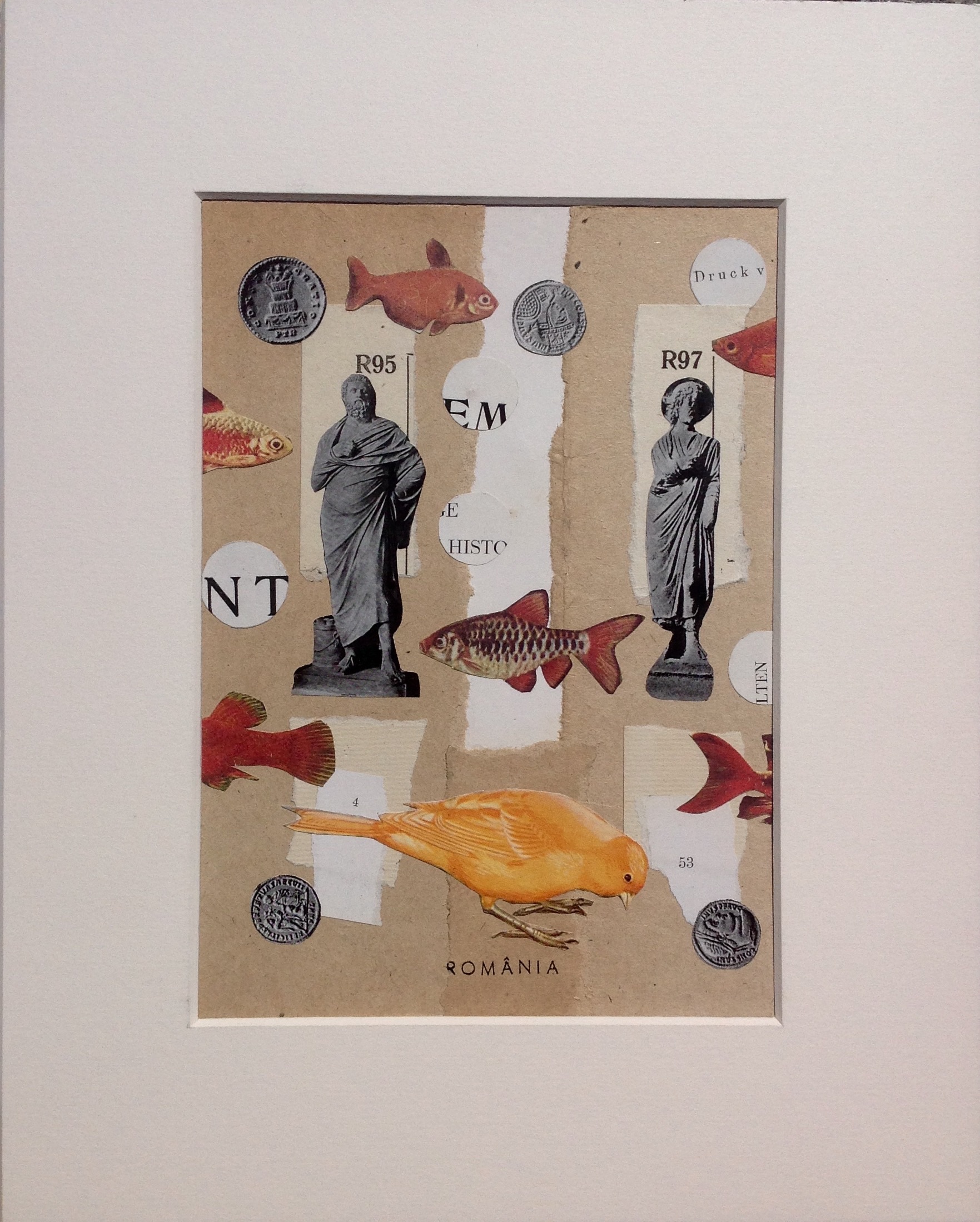 While working at other collages, this one suddenly appeared. All items from books, an old Russian banknote and a postcard bought on the flea market in Chisinau-Moldova. 18x24cm with cut out 10x14cm.