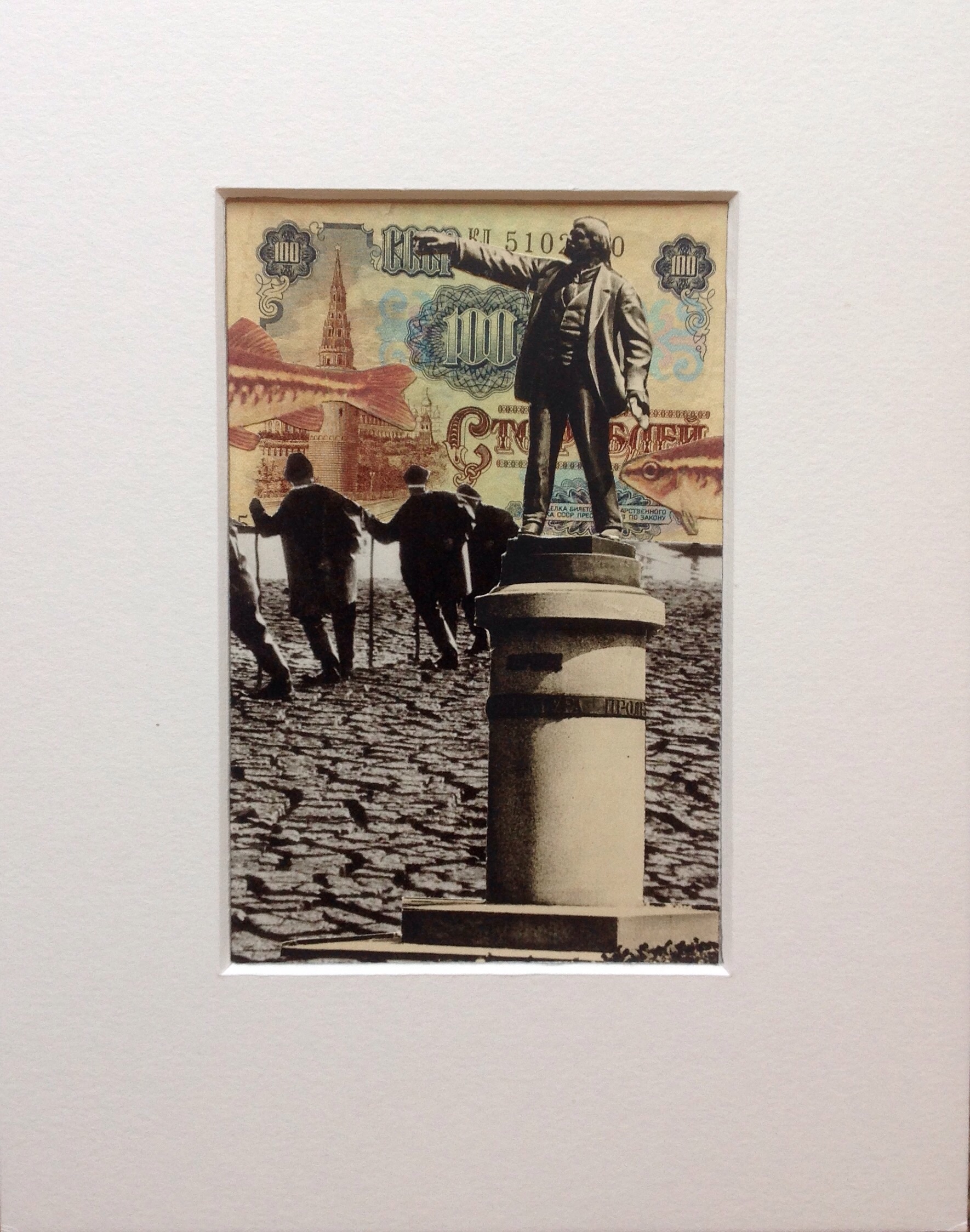 Similar to Go East. All pieces come from Moldova. Including the Old Russian banknote and the Lenin Postcard. This time a picture without the cardboard sheet with 10x14cm cutout. The picture is a bit yellowish because of poor light circumstances but that brings a certain atmosphere.