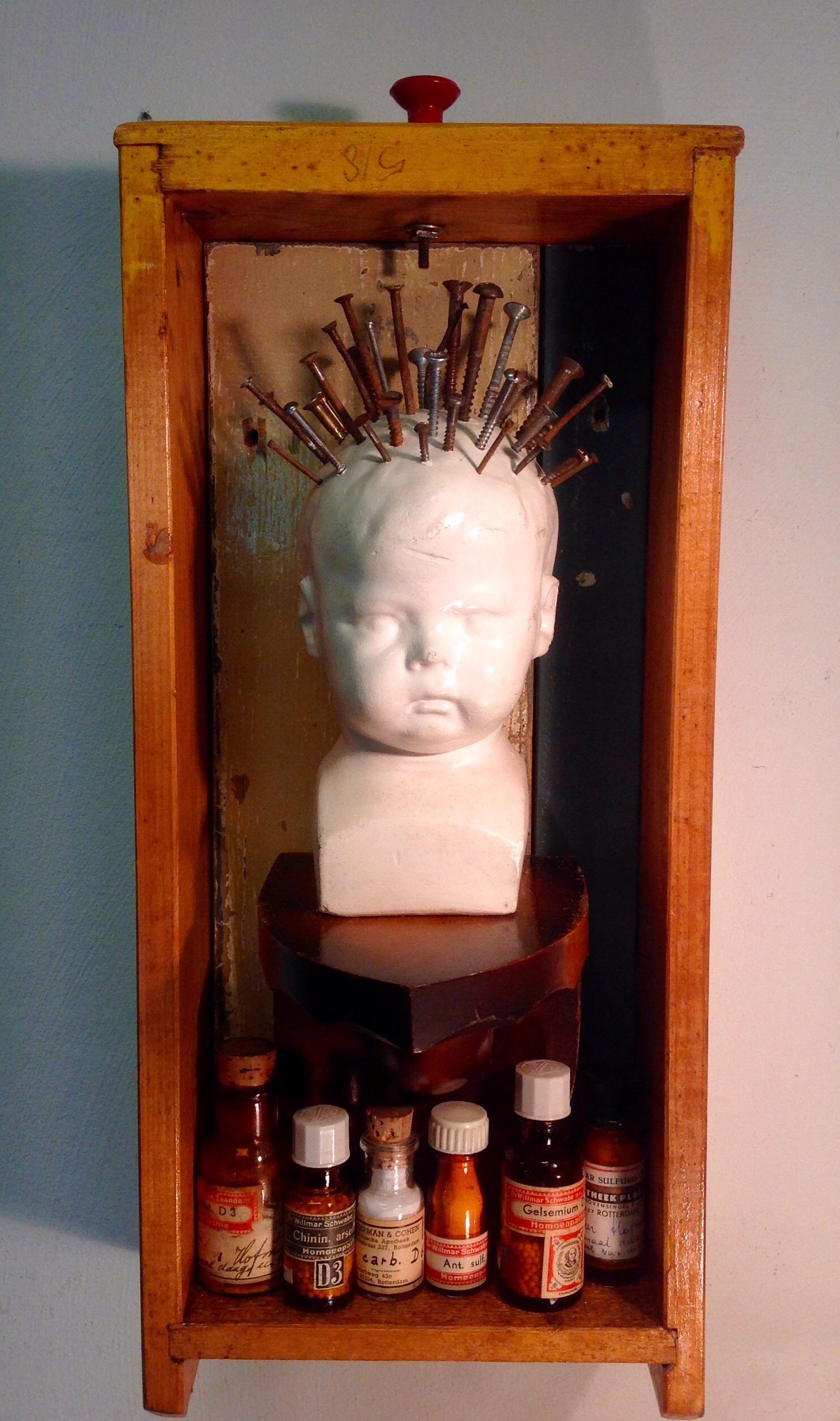 Assemblage. 40x20x10cm. Title is Schakenbosch. “Schaken” means chess in Dutch and “bosch” is the old Dutch spelling for wood. Schakenbosch is the name for the ground where my studio (a former mental hospital) is situated.