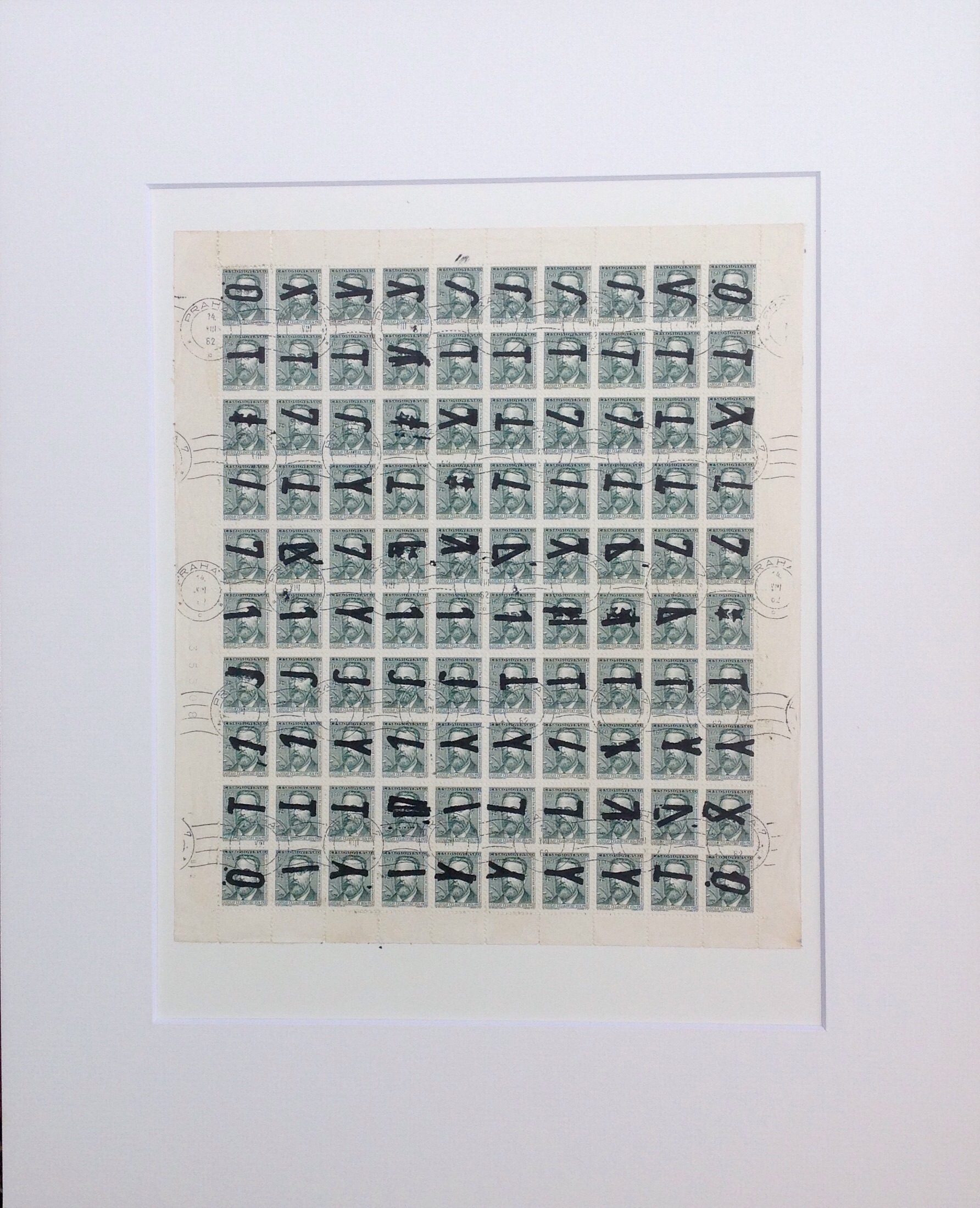 In my hometown there was a big hall where they sold live stock once a week. They also used it for sports and concerts. Then a disease affecting live stock broke out. The market stopped and the last years of the Groenoordhallen there were big flea markets. That’s where I bought a few sheets of stamps from Czechoslovakia. I worked on it with stamps and blockprint. Just for fun.