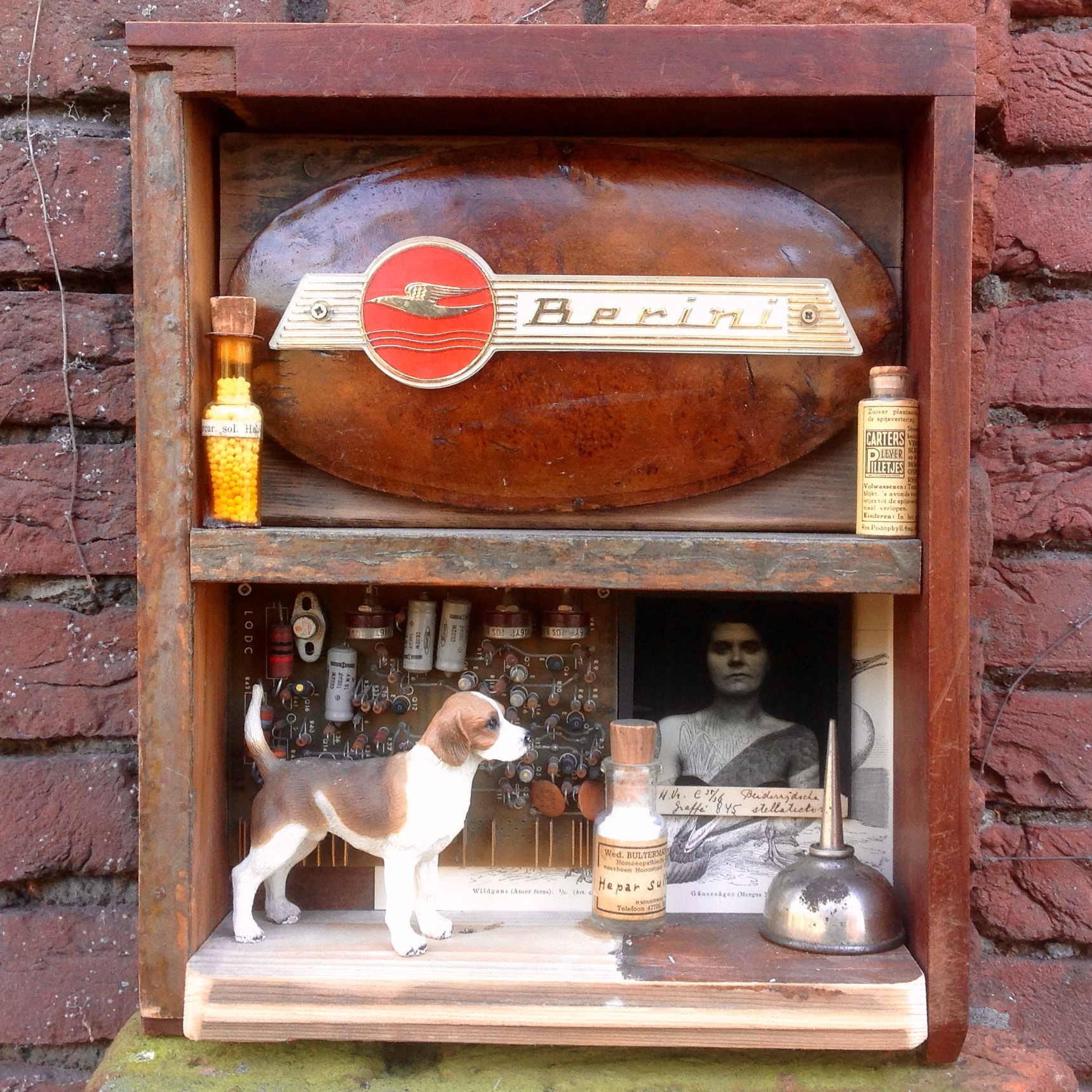 Assemblage. 25x25x8cm. Berini is a moped from Holland.