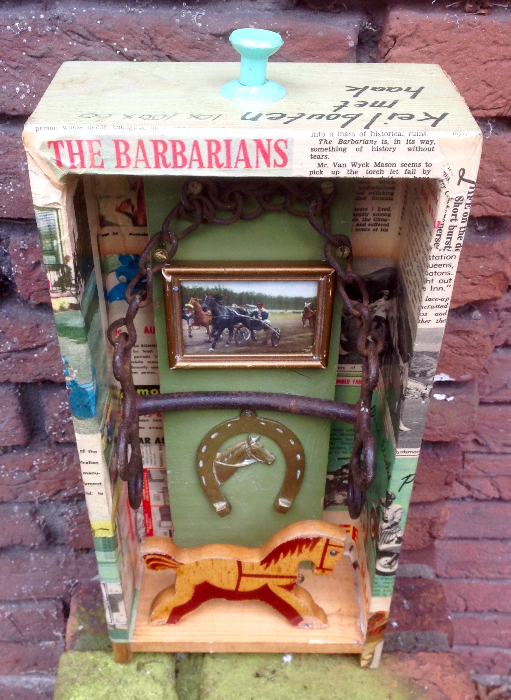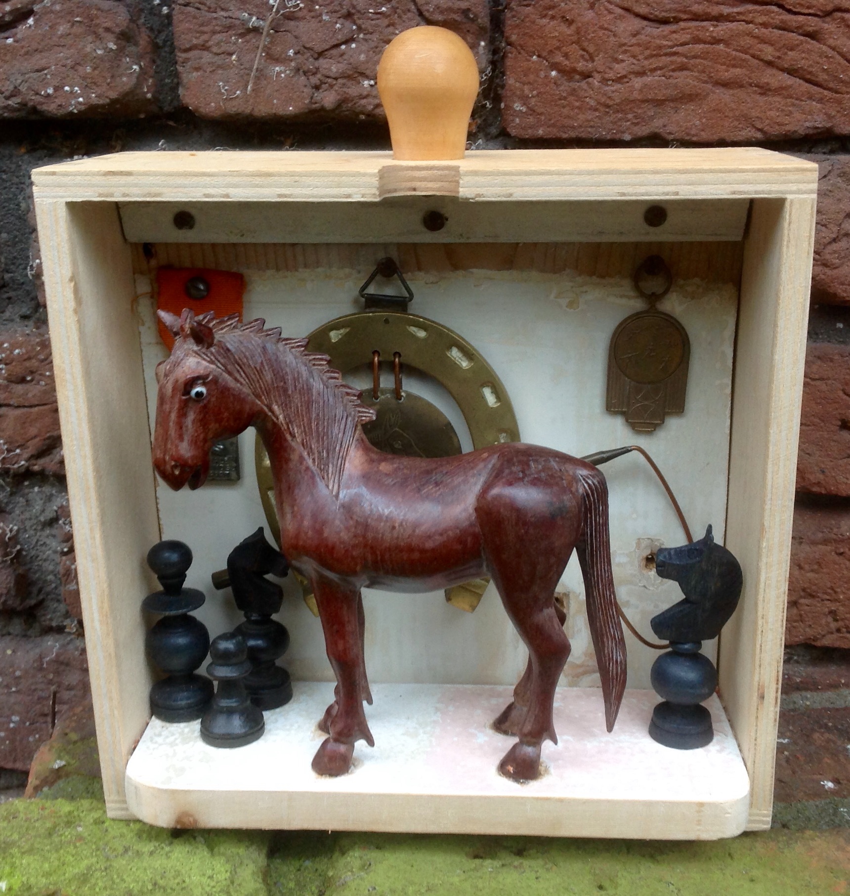 Assemblage. 20x20x8cm. Bought the horse in the middle from a man who said it was from Japan. With several other vintage horse items. Made in my studio in Leidschendam.