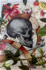 Working on vanitas collages. This is the first one and more are following the next weeks. The collage is made on 425 grams paper and the background is an old map of Italy and the watches are from the brand Helvetia. That explains the title of the collage (20x30cm/8x12inch). All material used are probably from the fifties or earlier.