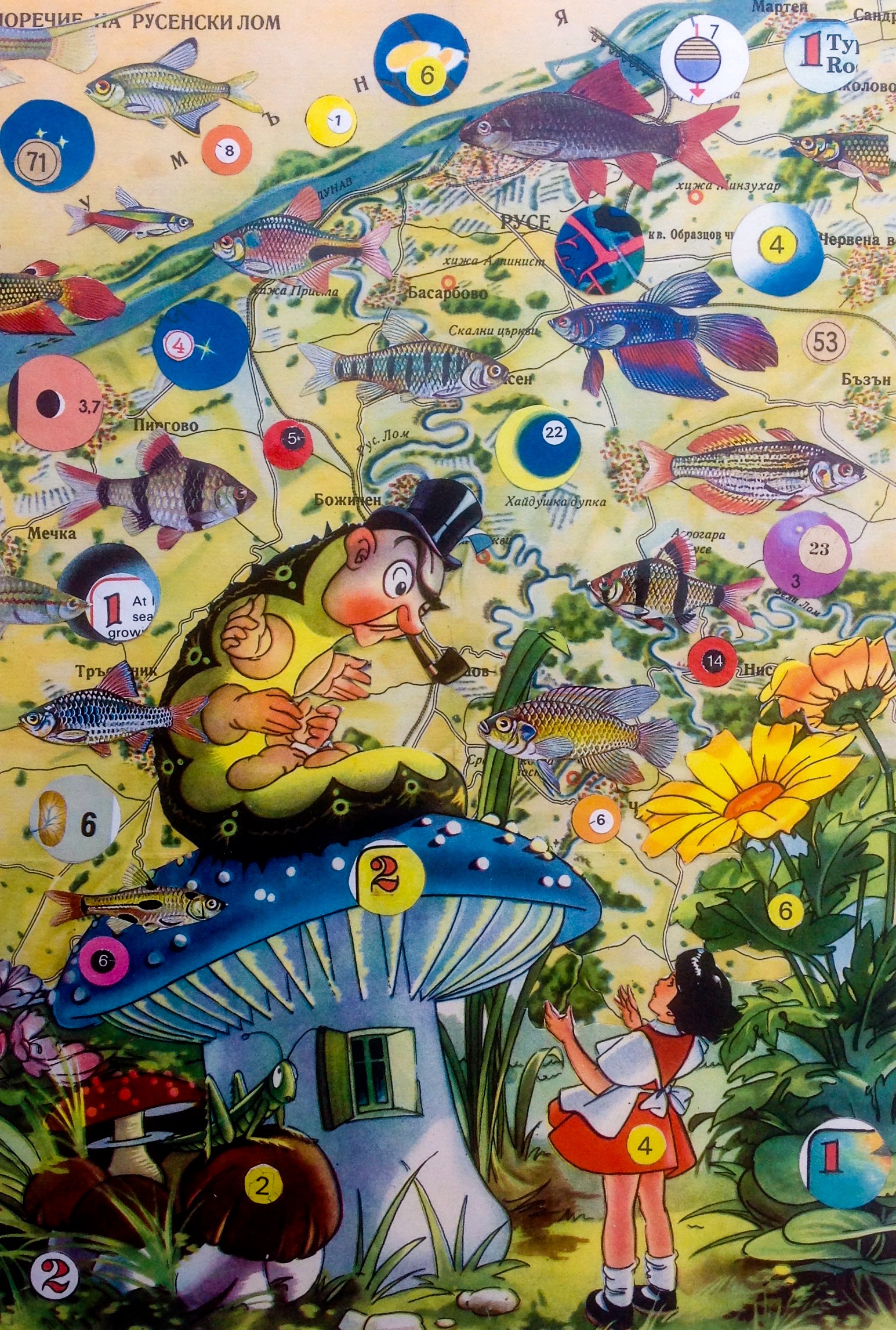 Collage (20x30cm/8x12inch) made in Ohrid-Macedonia with a map of Ruse and an old vintage children book.