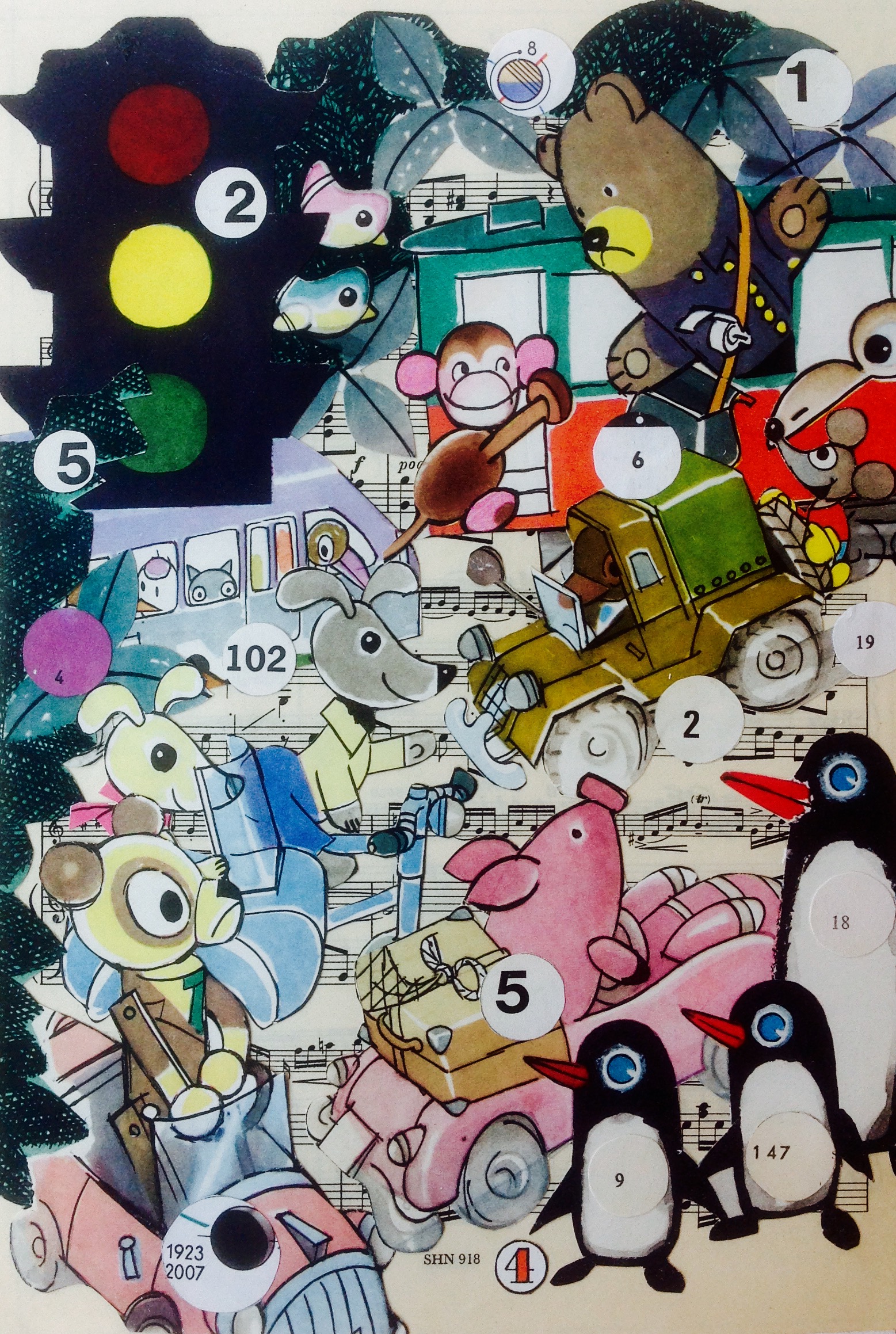 Analog collage made in Kosovo with illustrations of a sixties children book found during my trip through the Balkan in May/June 2018. 20x30cm/8x12inch.