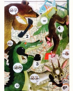 Made on my road trip through Bulgaria, Macedonia and Skopje. This one I made in Skopje. The only material I found was in Sofia and Skopje and mostly some children books and a few old maps of the sixties. Collage is 20x30cm/8x12inch.
