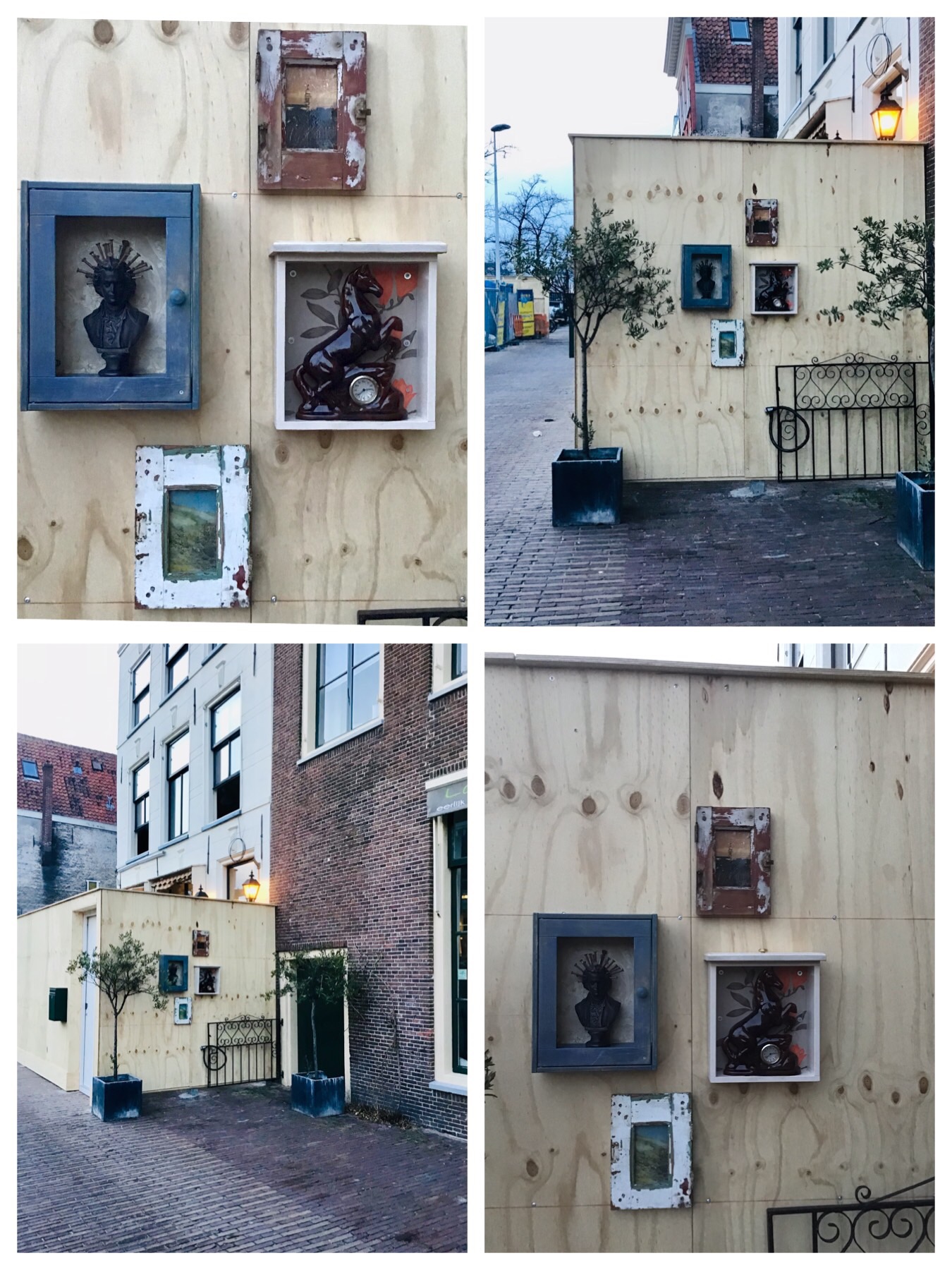Collages and assemblages on a fence on Stille Rijn – Leiden, Holland.