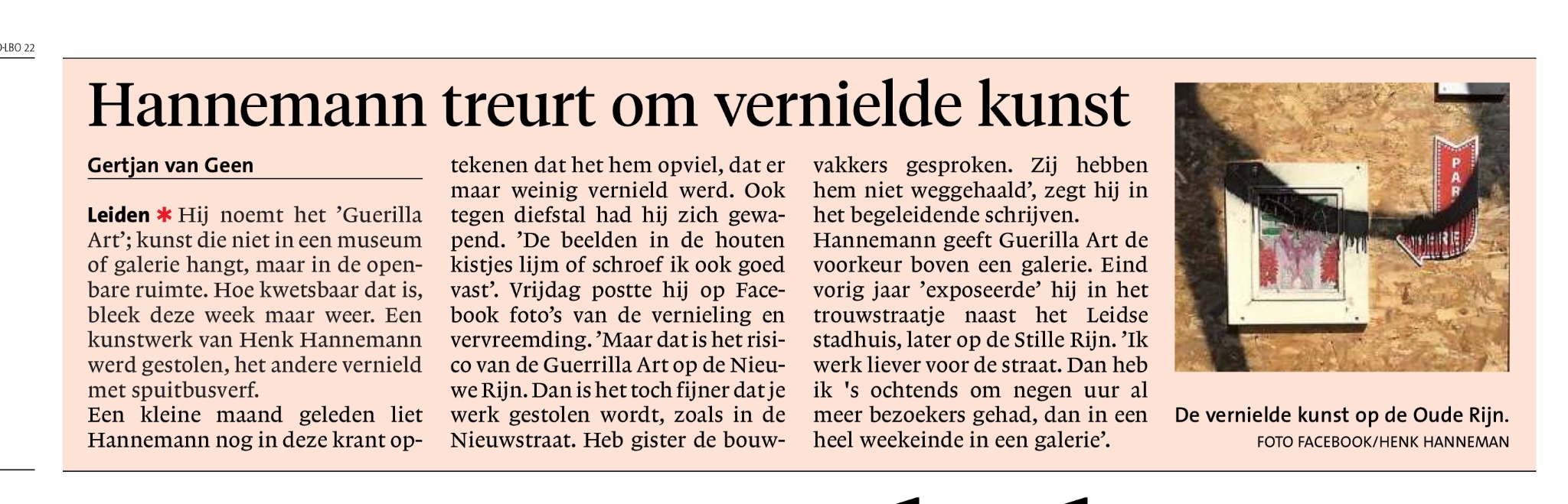 No, I’m not sad about a stolen object or destruction. It’s a part of the game. Most of the collages and assemblages hanging in the streets are untouched and therefore probably respected. I will remove them all in the next month.