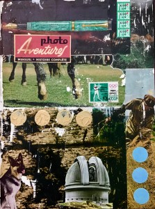 Transfer and collage on hard book cover. 20x28cm. The book covers are from a Encyclopaedia Brittanica from 1955.