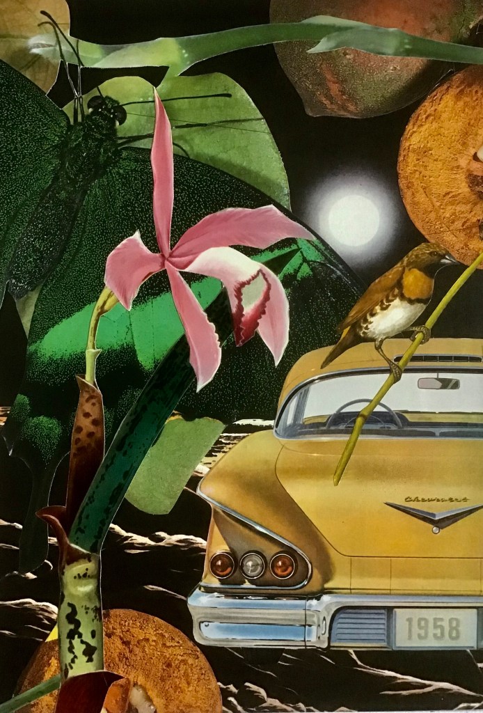 Analog collage with Chevrolet advertisement from a National Geographic from 1956. 19x29cm.