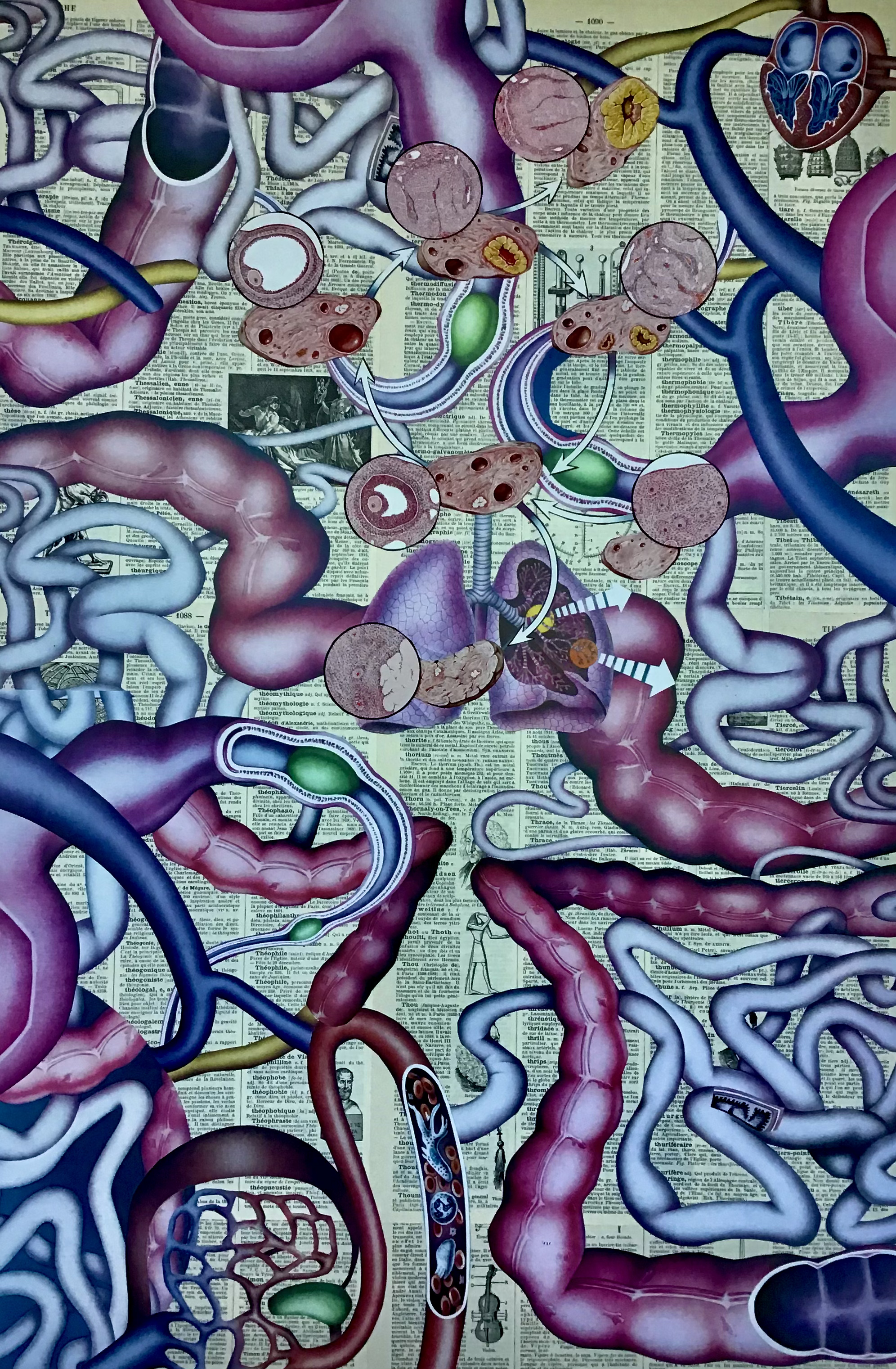 Analog collage on 300 grams watercolor paper. 40x60cm.