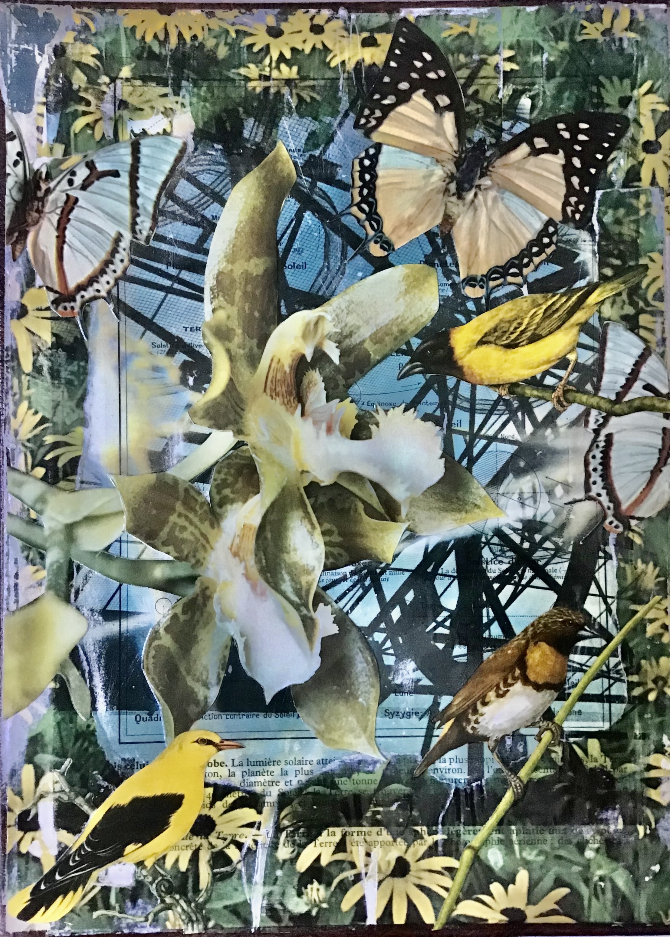 Mixed media. 21x28cm. Pigment transfer and collage on vintage book cover