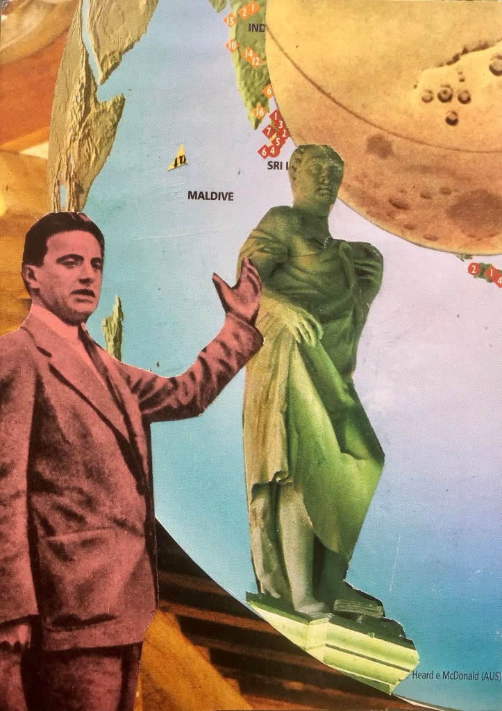 Series of collages made in Lecce and Bari after I found some books on a street market in Lecce, Two of them where from the sixties and showed history made clear for youngsters. But with a remarkable interest for Russia and communism. Probably propaganda material from Russia. Many images were of poor quality but therefore interesting and funny.