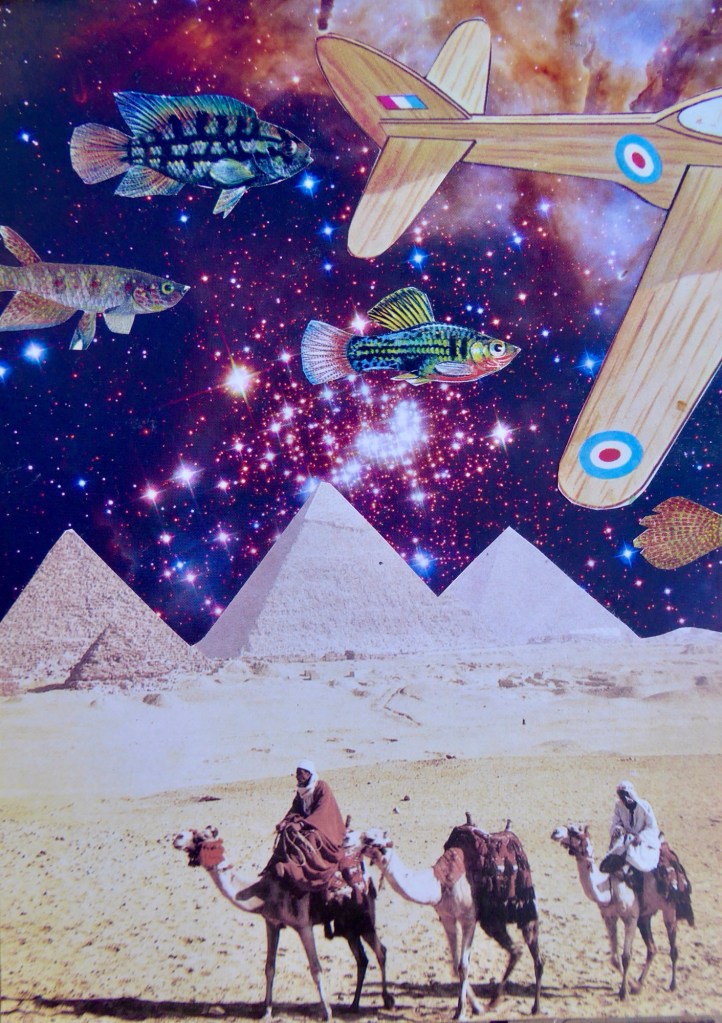 During my stay in Albox I volunteered for https://www.apsa.org.es/ and walked the dogs. During my travels I collect old books and make collages along the way. So I decided to make collages, but them on my Facebook and sell them for a donation directly to APSA. And I think it worked fairly well.