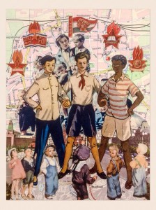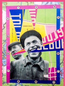 Found this communist propaganda magazine from the fifties in Sofia-Bulgaria. It appealed to the communist youth in different countries. Only the cover of the magazine was interesting. It also had emblems of some youth organizations in the world. You can see some in the upper part of the work. Handmade collage. 20x30cm/8x12inch.