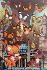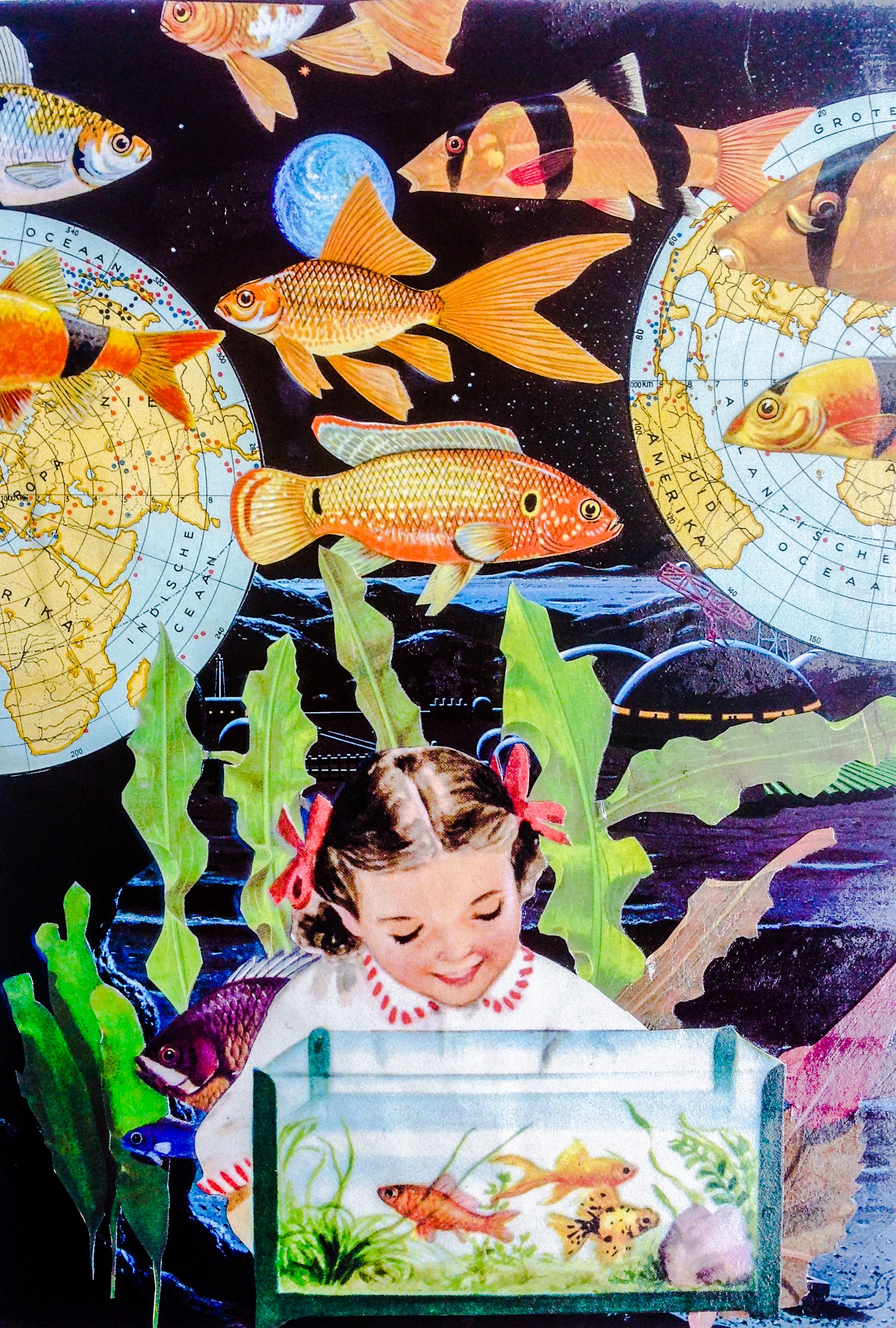 My studio’s are in Hazerswoude and Leidschendam but my hometown is Leiden. And next week American Aquarium is playing in Leiden. That’s the simple explanation for the name of this handmade collage (20x30cm/8x12inch). Central is a illustration from a French book from the sixties: Histoires d’enfants et d’animaux. With several other vintage images from books from the sixties and seventies.
